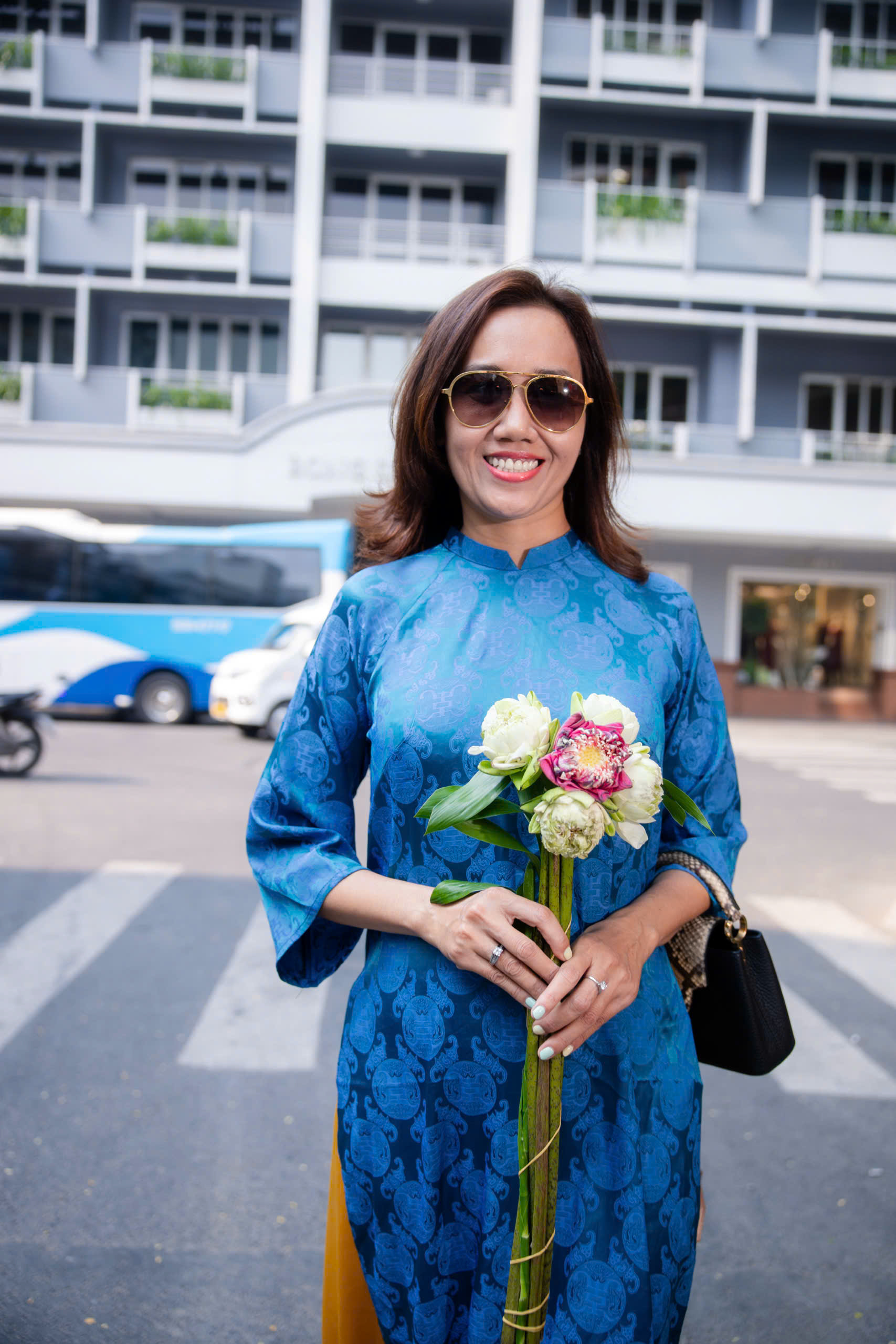 Cô cho biết yêu thích áo dài vì tôn lên vẻ dịu dàng của phụ nữ Việt. Mỗi dịp xuân về, cô luôn chọn trang phục truyền thống để lưu giữ những khoảnh khắc ý nghĩa.